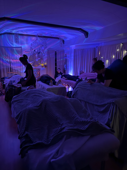 As you lie comfortably on a massage table (fully clothed), you will be guided into a state of profound relaxation through gentle therapeutic touch and immersive live sound. The intention is to calm the nervous system, release physical tension, and allow the mind and body to reset together.